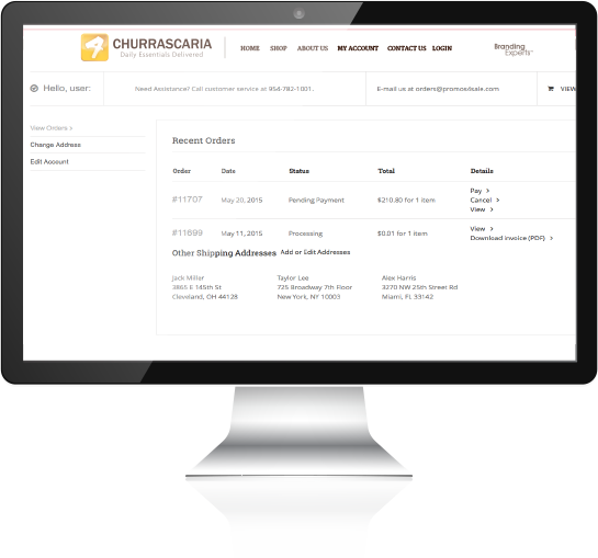View and print your invoices, etc.